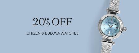 Don't miss your chance! Shop in store and save 20% off on Citizen & Bulova watches.